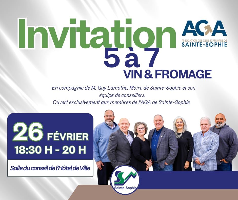 votre CA vous propose de rencontrer votre Maire M. Lamothe, ainsi que son équipe de conseillers, pour un "6 à 8 causerie" à la Salle du conseil de l'hôtel-de-ville.